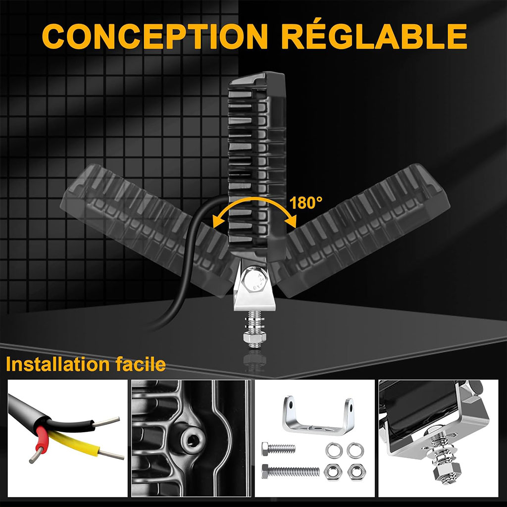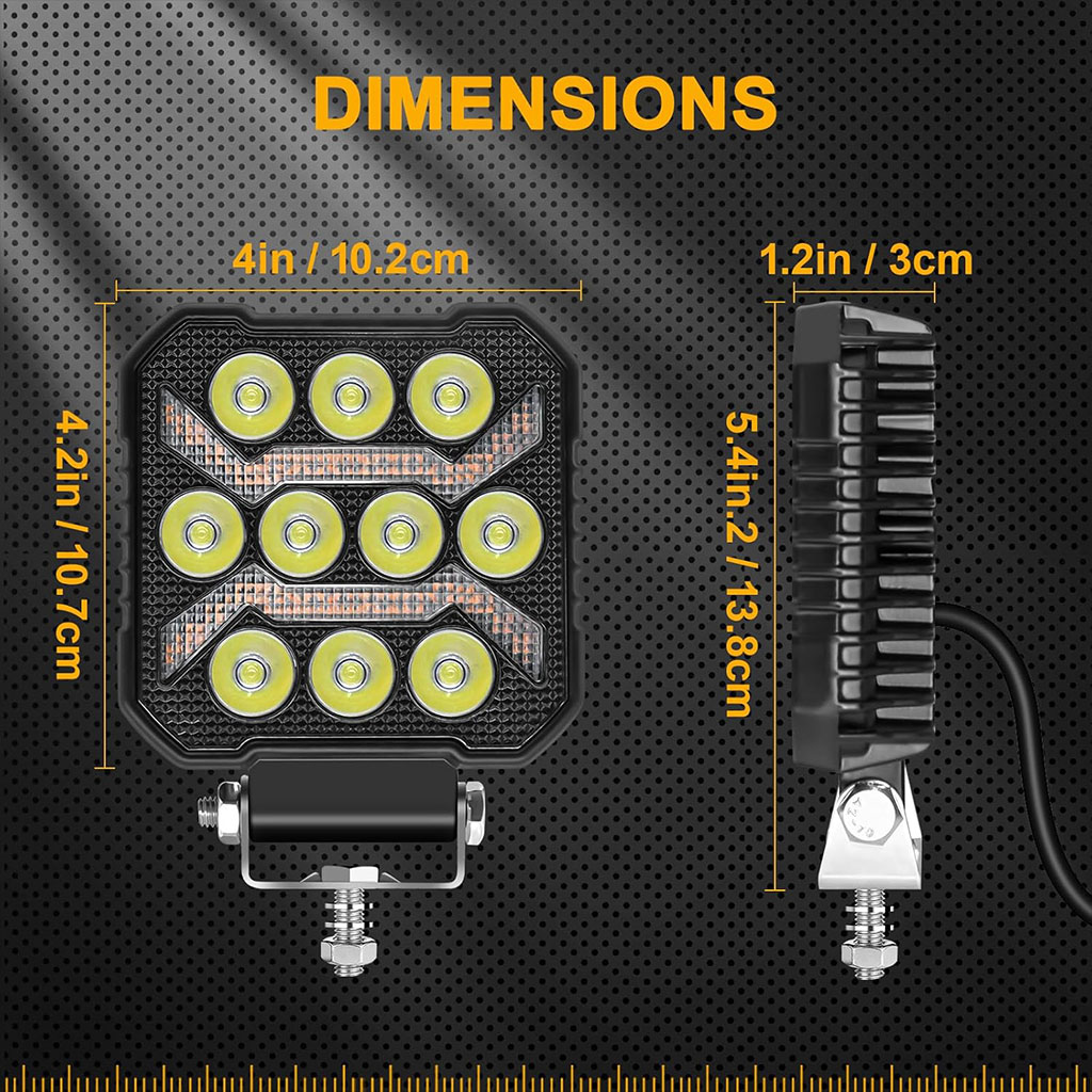 💡 مزيج من ضوء الكشاف وضوء الإشارة يستخدم ضوء العمل LED من AnTom عدسة عاكسة بزاوية واسعة جدًا تصل إلى 120 درجة لتوفير إضاءة قوية وموزعة بشكل أفقي متساوٍ. في المنتصف، يجمع المصباح بين 10 شرائح بيضاء 6500K نوع 3030 و شريحتين صفراوين 3000K، مما يمنحك 3 ألوان مختلفة و5 أوضاع تشغيل. يمكن ضبط الضوء الأصفر من وضع الإضاءة الثابتة إلى وضع الوميض، لتجمع بين الإضاءة العملية وضوء التحذير في نفس الوقت.⚙️ تفاصيل التصميمالحجم: 10.8×10.8×3.8 سمدرجة حرارة التشغيل: من -50° إلى 60°شدة الصدمة: 60Gقوة الإضاءة: 2400 لومندرجة اللون: 6000Kمزود بحامل تثبيت دوّار 360° مع براغٍ سهلة التركيب. يحتوي على وضعين: ضوء كشاف وضوء وامض لضمان أمانك أثناء العمل الليلي.💧 مقاومة للماء والغبار بمعيار IP68 يتميز بوصلة سيليكون محكمة الإغلاق تمنع تسرب الماء وتحمي هيكل المصباح من التلف. كما أن تصميم الشبكة الثلاثية للغطاء يساعد على تقليل تكاثف الماء والضباب داخل المصباح. الهيكل مصنوع من ألومنيوم مصبوب عالي المتانة يوفر مقاومة ممتازة للاهتزازات والغبار.🔥 تبديد حراري ممتاز مصنوع من سبائك الألومنيوم عالية التوصيل الحراري، مع تصميم احترافي لفتحات التهوية لتحسين أداء التبريد وتفريغ الحرارة الزائدة بسرعة. السلك الداخلي مصنوع من نحاس عالي الجودة يتحمل درجات حرارة مرتفعة، مما يمنحك عمر استخدام أطول وأداءً أكثر استقرارًا.🚗 توافق واسع مصمم ليعمل على جميع المركبات ذات الجهد من 9 إلى 32 فولت مثل: السيارات، الدراجات النارية، الشاحنات، مركبات ATV / UTV، الجرارات، الحافلات، سيارات الإسعاف، والمعدات الصناعية والزراعية. كما يمكن استخدامه في الحدائق، المرائب، ومواقع العمل.✅ ضمان الجودة نوفر إصلاحات مجانية واسترجاعًا خلال 90 يومًا — لتستخدم المنتج بثقة تامة ودون قلق من أي مشاكل بعد الشراء.