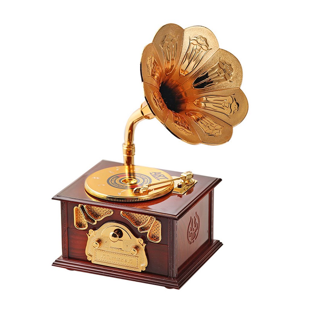 Phonographe trompette dorée et boîte à Bijoux Décorative – صندوق موسيقي