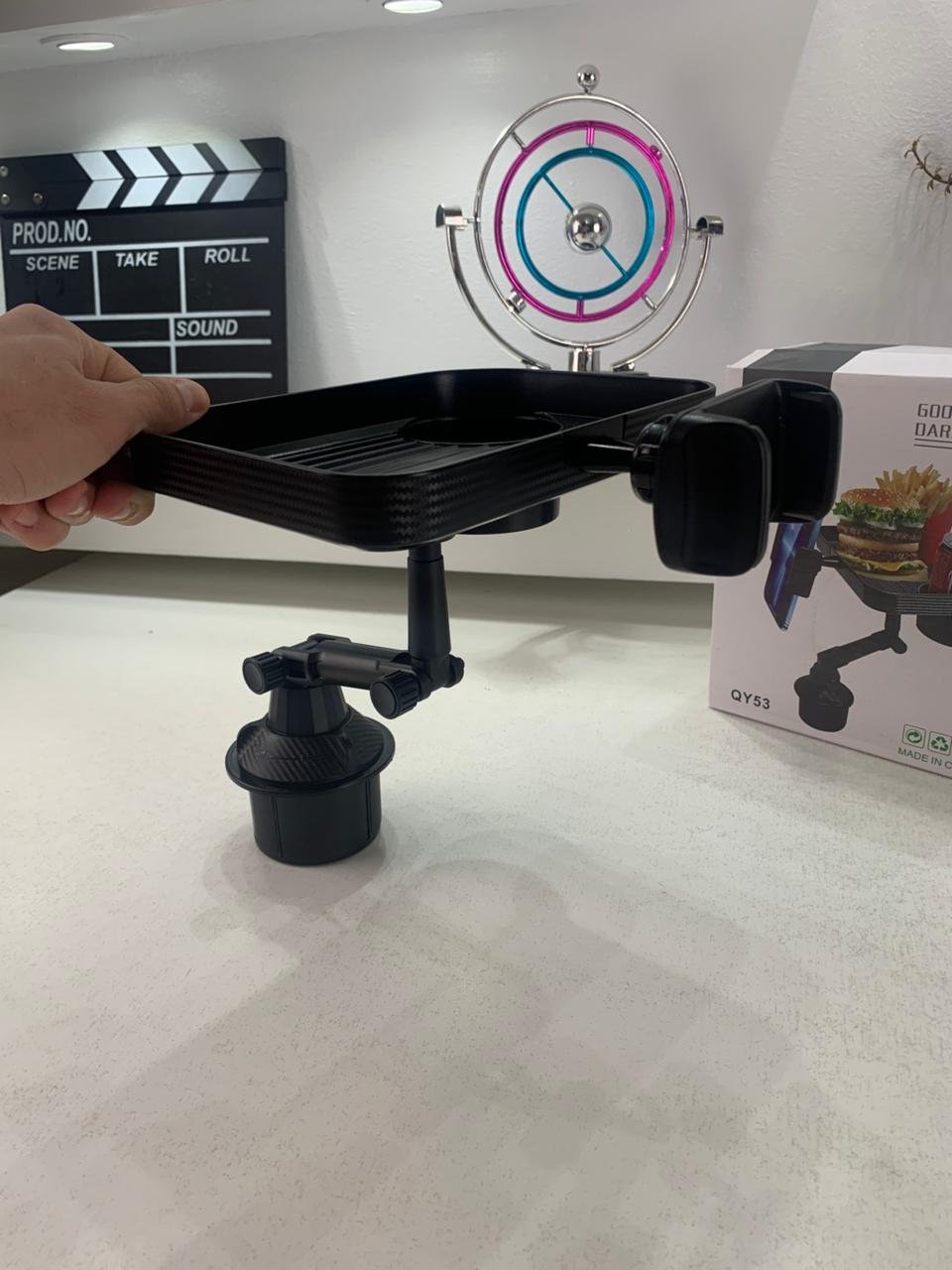 طاولة قابلة للدوران لحامل الأكواب في السيارة 🚗🔄 تحريك سهل وقابل للتعديل تمتاز هذه الطاولة بزوج من الأذرع الدوارة وقاعدة تدور بـ 360 درجة، ما يتيح لك تعديل وضعيتها حسب الحاجة بسهولة. بفضل تثبيتها المحكم، تبقى الطاولة ثابتة دون خطر السقوط، مما يجعل تجربة تناول الطعام داخل السيارة أكثر راحة لك وللركاب 🍔🥤.💪 متينة وثابتة مصنوعة من بلاستيك ABS عالي الجودة، الطاولة تحتوي على حامل للهاتف لمشاهدة الفيديوهات أثناء الأكل 📱. تتحمل وزنًا يصل إلى 3 كغ، ويمكنك وضع الوجبات الخفيفة، المشروبات، أو حتى الوجبات السريعة بكل أمان.🧃 تصميم متعدد الاستخدامات الطاولة مزوّدة بحامل للأكواب، وسادة سيليكون مانعة للانزلاق، وقاعدة لوضع الأطباق أو الملحقات الصغيرة. كل شيء مصمم ليوفر لك أقصى درجات الراحة والترتيب أثناء القيادة 🚘.🧳 توفر المساحة وتنظيم السيارة تساعدك هذه الطاولة على تنظيم أغراضك بشكل مثالي، وتمنع سقوطها بين المقاعد. يمكنك استخدامها لتخزين الهاتف، المحفظة، المفاتيح، النقود وغير ذلك لجعل رحلتك أكثر راحة وأمانًا.📐 المواصفات • الأبعاد: 29×20×14 سم • المواد: بلاستيك ABS • الدوران: 360° • الوزن الموصى به: حتى 3 كغ • مناسب: للرحلات، التنقل اليومي، العائلات، إلخ.