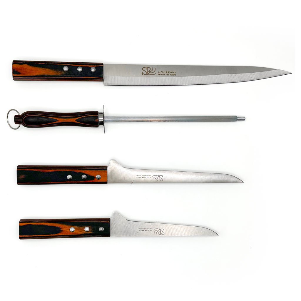 - المحتويات: مجموعة سكاكين متنوعة (تقطيع، تشريح، عظام) + حقيبة تخزين.