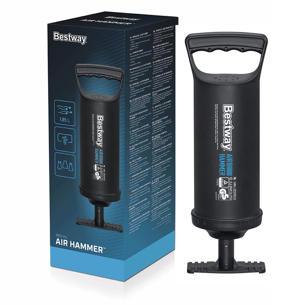 مضخة هوائية يدوية – Bestwayالمزايا: 3 فوهات قابلة للتبديل، ضخ في الاتجاهين، خرطوم مرنالطول: 30-36 سم | السعة: 850 سم³ | الوزن: 0.4 كجم