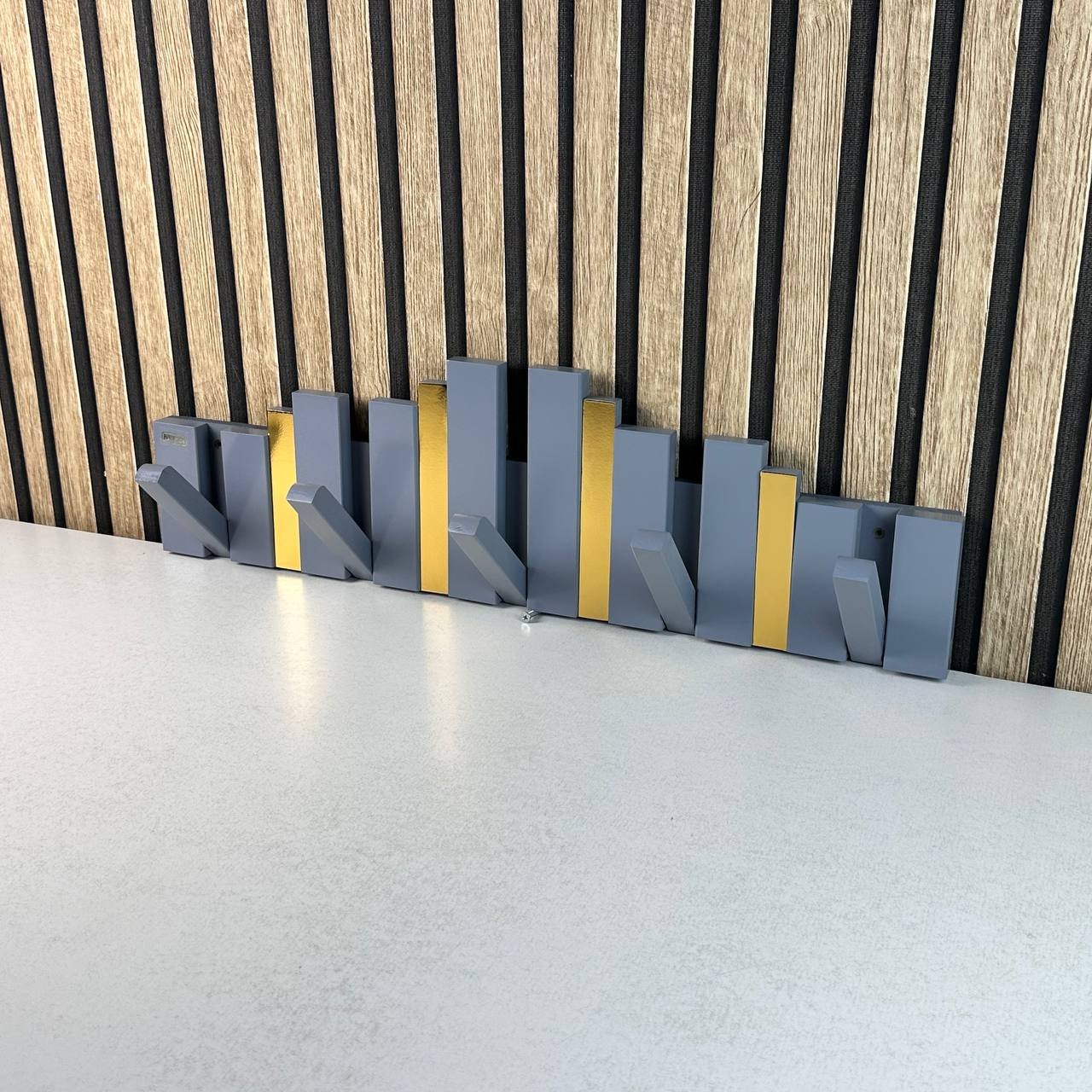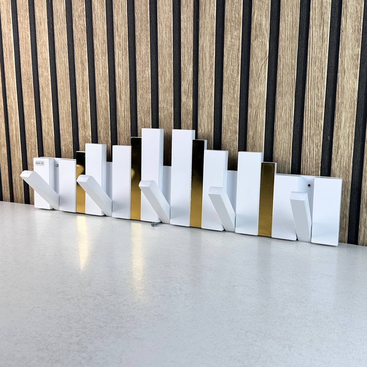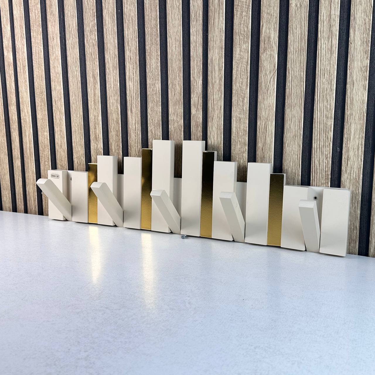 Porte-Manteau Mural Design Piano en Bois avec Touches Dorées – علاقة ملابس خشبية