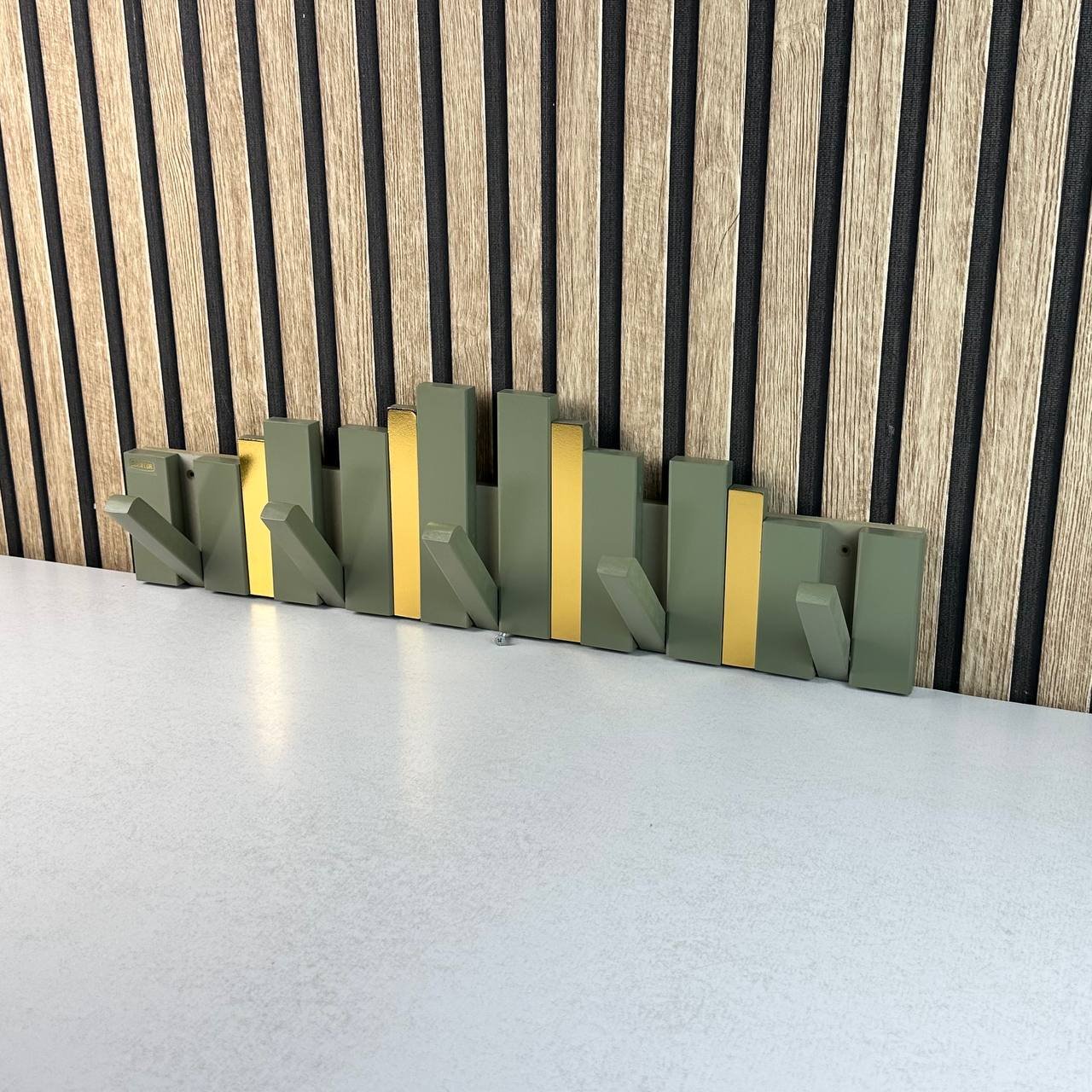 تصميم ذكي وقابل للطي: تتميز بـ “مفاتيح” خشبية يمكنك إنزالها عند الحاجة لتعليق الملابس، الحقائب، أو المناشف، وطيها للأعلى لتصبح قطعة ديكور مسطحة وأنيقة عند عدم الاستخدام.جودة تصنيع استثنائية: مصنوعة من خشب عالي الجودة بلمسات نهائية ناعمة، مع تطعيمات باللون الذهبي الفاخر تضفي لمسة من الفخامة على أي غرفة.متعددة الاستخدامات: مثالية لمدخل المنزل (الكونسول)، غرف النوم، الحمامات، أو حتى المكاتب العصرية.سعة تعليق كبيرة: توفر نقاط تعليق متعددة بأطوال مختلفة لتناسب المعاطف الثقيلة والحقائب والإكسسوارات الخفيفة.سهولة التركيب: تأتي جاهزة للتثبيت على الحائط لتوفير المساحة الأرضية وجعل المكان يبدو أكثر اتساعاً وتنظيماً.المواصفات الفنية:المادة: خشب طبيعي معالج.الألوان المتاحة: (أبيض، بيج، أزرق، خشبي طبيعي، أخضر زيتوني) مع لمسات ذهبية.النمط: مودرن / نيو كلاسيك.الأبعاد : 70x20cm.