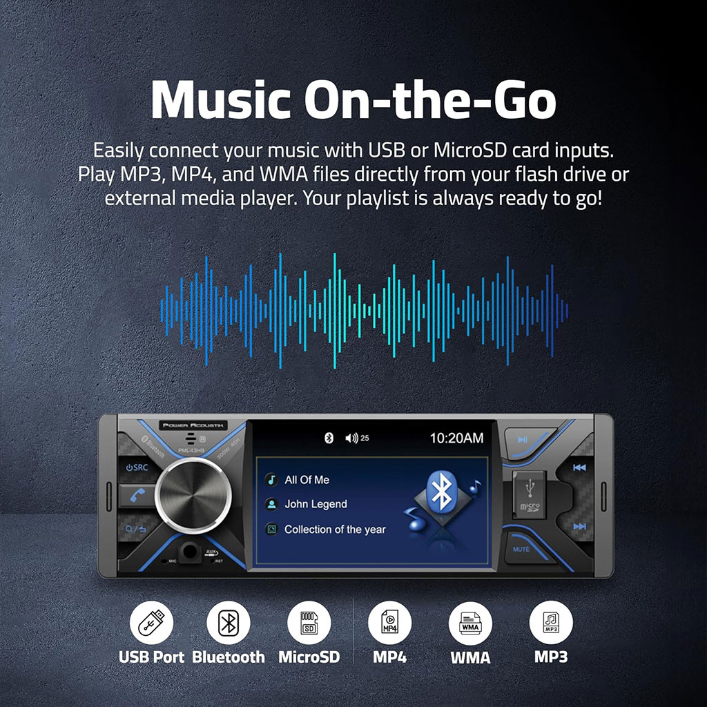 🚗 مسجل سيارة 1-DIN بشاشة 4.3 بوصة وإضاءة RGB📺 حجم الشاشة والتصميم مسجل سيارة Single DIN مزوّد بشاشة 4.3 بوصة مع 7 أوضاع ألوان مختلفة. تتيح لك تقنية RGB تخصيص إضاءة الأزرار وواجهة الجهاز بالكامل، لتنسجم مع إضاءة سيارتك أو لإنشاء لون خاص حسب ذوقك.📶 بلوتوث قوي ومتطور يدعم مسجل السيارة من Power Acoustik تقنية Bluetooth للاتصال الآمن بالهواتف الذكية والأجهزة الأخرى. يدعم بروتوكولات A2DP وAVRCP لبث الصوت لاسلكيًا بجودة عالية، مع إمكانية التحكم في تشغيل الموسيقى مباشرة من شاشة الجهاز، والاستفادة من بعض تطبيقات الوسائط المتعددة.🔊 مضخم صوت مدمج مزود بمضخم صوت داخلي Class A/B بقدرة قصوى تصل إلى 75 واط، مناسب لمعظم سماعات السيارة الأصلية. إعدادات صوت متكاملة تشمل:توازن الصوت (Balance)توزيع الصوتالتحكم في الجهير (Bass) والحدة (Treble)🎬 تشغيل الفيديو يدعم تشغيل فيديو بدقة 1080p عبر:USBبطاقة SDBluetooth استمتع بمشاهدة المحتوى المفضل لديك على شاشة عالية الوضوح بقياس 4.3 بوصة.⚙️ مواصفات ومميزات إضافيةنظام وسائط رقمية 1-DINشاشة LCD قياس 4.3 بوصةهيكل قياسي ISO 1-DINيدعم كاميرا الرجوع للخلف (مدخل RCA + تشغيل تلقائي 12V)معادل صوت 4 نطاقات (EQ) بقدرة ±8 dBأزرار LED بإضاءة RGB (7 ألوان)راديو FM متعدد المناطقإضاءة محيطيةجهاز تحكم عن بعد لاسلكيقواعد تثبيت مرفقة📏 الأبعاد والوزنالأبعاد: 15.24 × 20.32 × 5.84 سمالوزن: 703 غرام