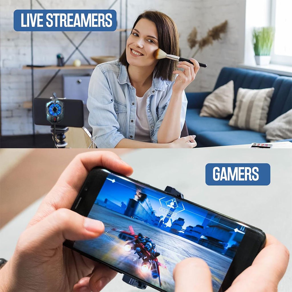 ❄️ مروحة تبريد للهاتفمزوّدة بتوربو داخلي قوي لتبريد الهاتف بسرعة دون صوت مزعج.سرعتان للتبريد لتلبية مختلف احتياجات استخدام الهاتف.تصميم بمشبك سهل التركيب والفك.مصنوعة من PC، ألومنيوم، وسيليكون عالي الجودة.تناسب الهواتف من 4.0 إلى 6.7 بوصة.واجهة Type-C، وتعمل بجهد 5V/2A.صغيرة الحجم: الطول 8 سم، العرض 6 سم تقريبًا.