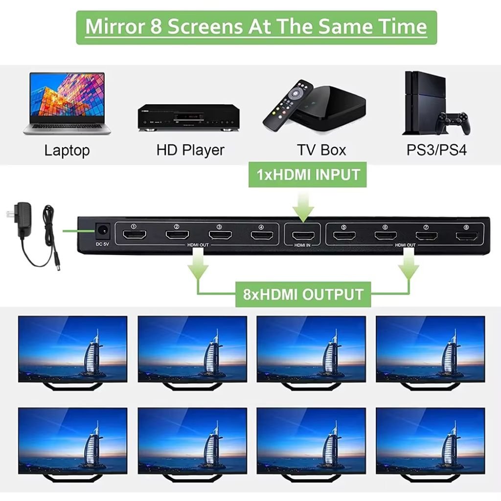 Répartiteur Vidéo HDMI 1×8 avec 8 Ports Compatible 4K – HDMI X8 موزع