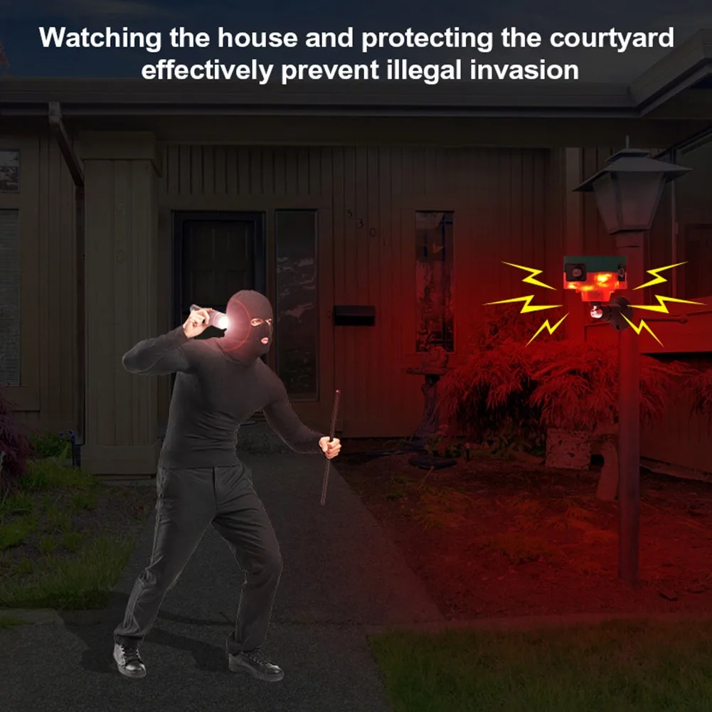 Répulsif pour animeux Capteur de mouvement à énergie solaire, alarme sonore et lumineuse 6 LED – مستشعر حركة يعمل بالطاقة الشمسية لطارد الحيوانات