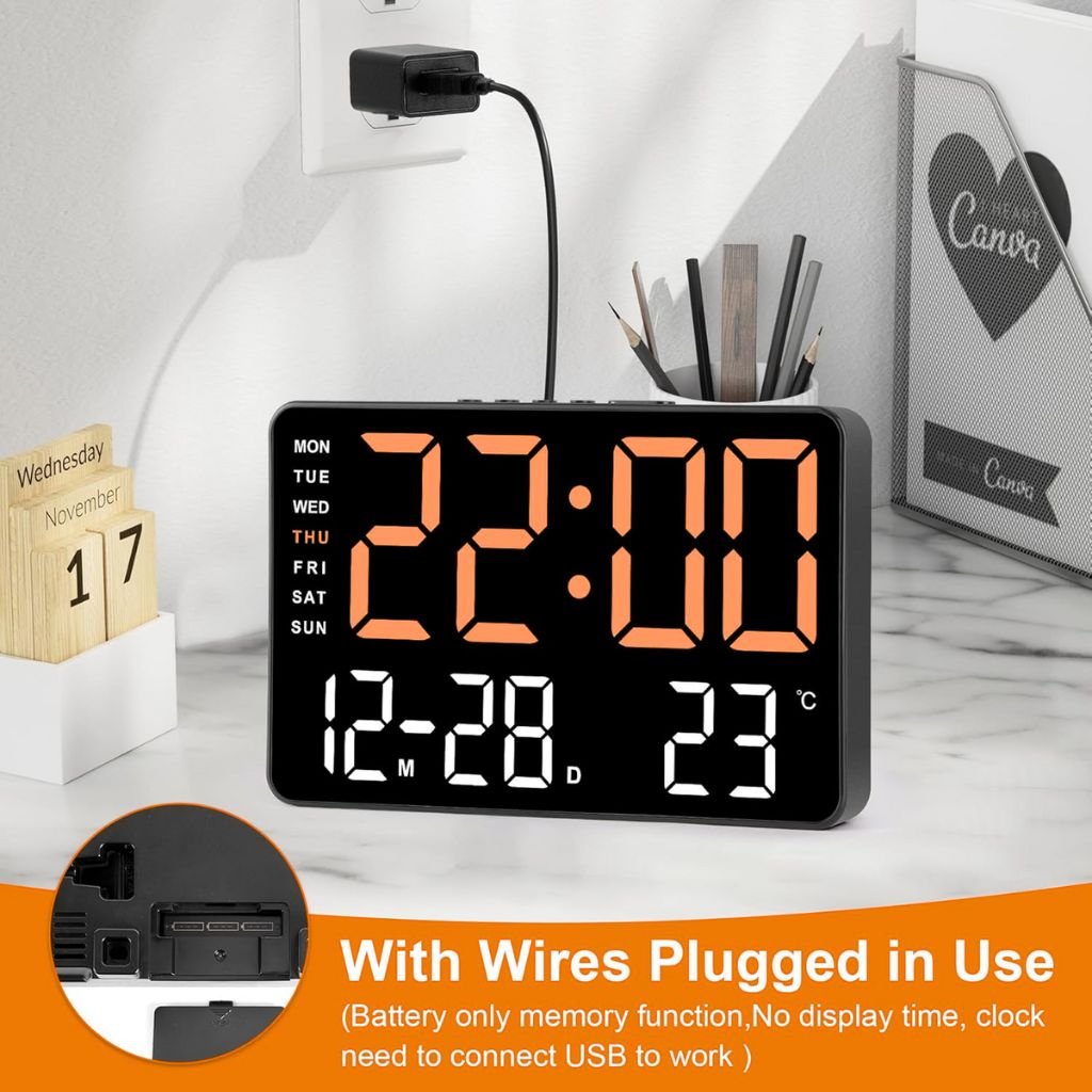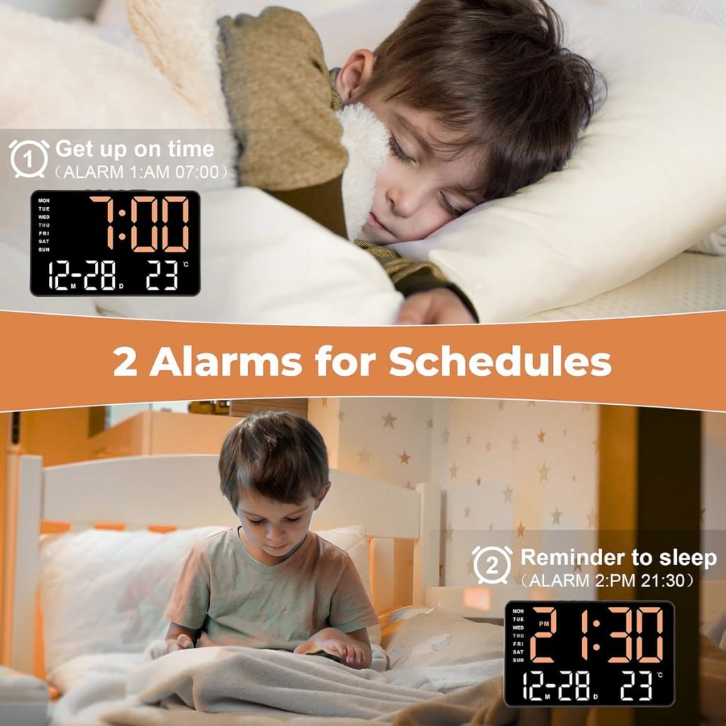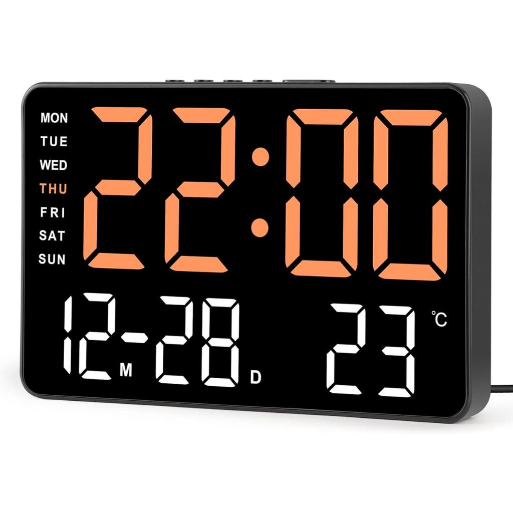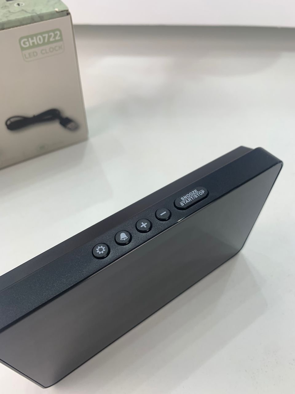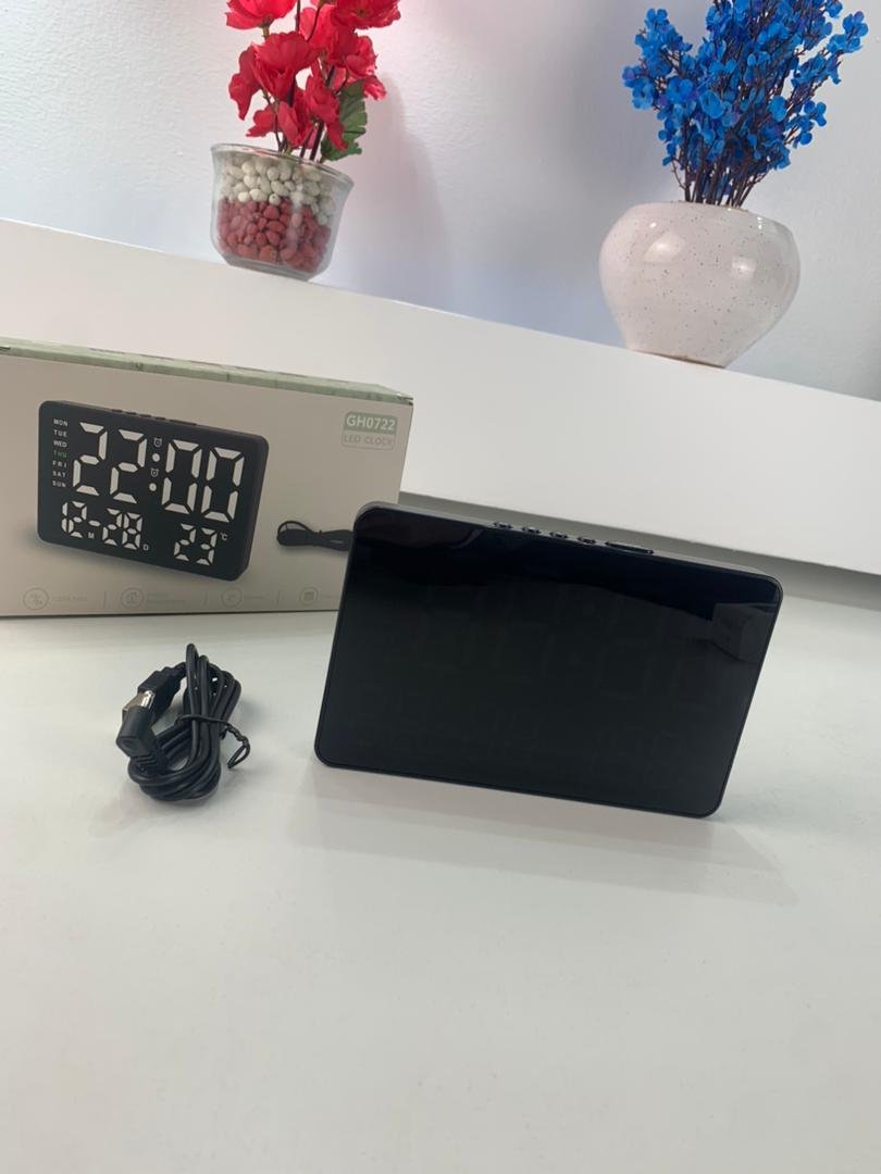 ⏰ ساعة رقمية بشاشة LED كبيرة 7.2 بوصةشاشة LED واضحة: عرض الساعة، التاريخ ودرجة الحرارة بوضوح حتى من مسافة بعيدة.منبه مزدوج مع خاصية الغفوة: ضبط منبهين منفصلين مع خيار التكرار لنيل دقائق إضافية من الراحة.إضاءة قابلة للتعديل بـ 5 مستويات: تحكم في سطوع الشاشة حسب تفضيلاتك لراحة العين نهارًا وليلاً.عرض اليوم والتاريخ: تقويم مدمج يساعدك في تنظيم يومك بكفاءة.تصميم عصري وأنيق: مثالي لغرفة النوم، المكتب أو الصالة، يضفي لمسة جمالية على المكان.