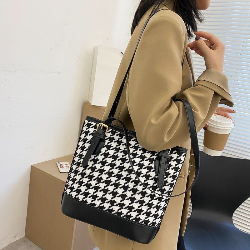 Sacs à bandoulière pied-de-poule Vintage pour femmes grande capacité