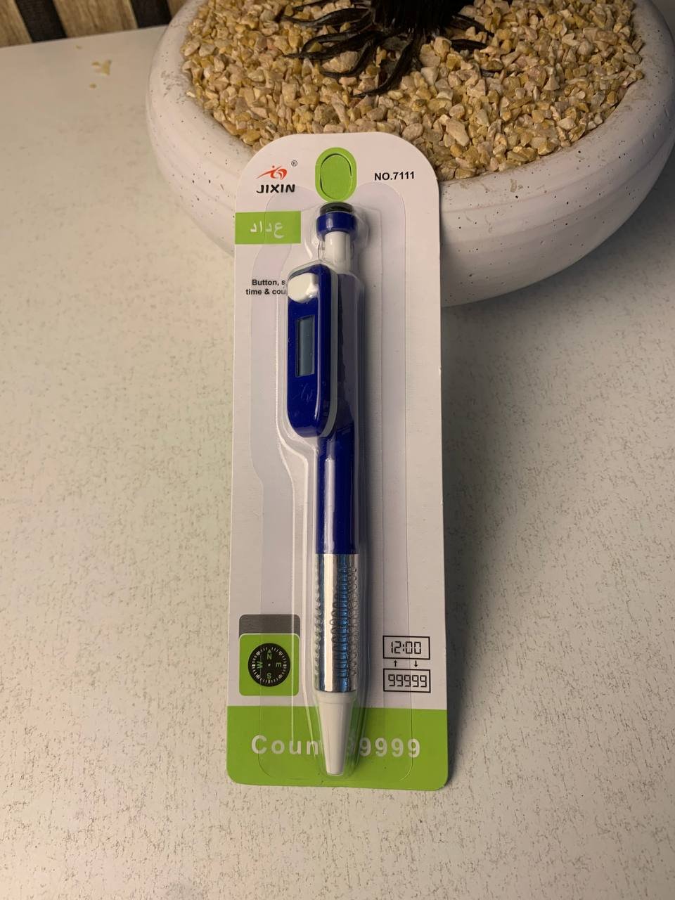 2. ساعة رقمية مدمجة: لا داعي للنظر إلى هاتفك أو ساعة يدك، فالقلم يحتوي على شاشة صغيرة تعرض الوقت، لتبقى على دراية بالوقت أثناء انشغالك بالذكر.