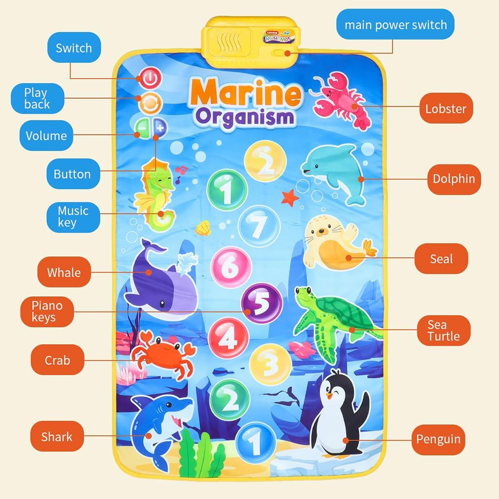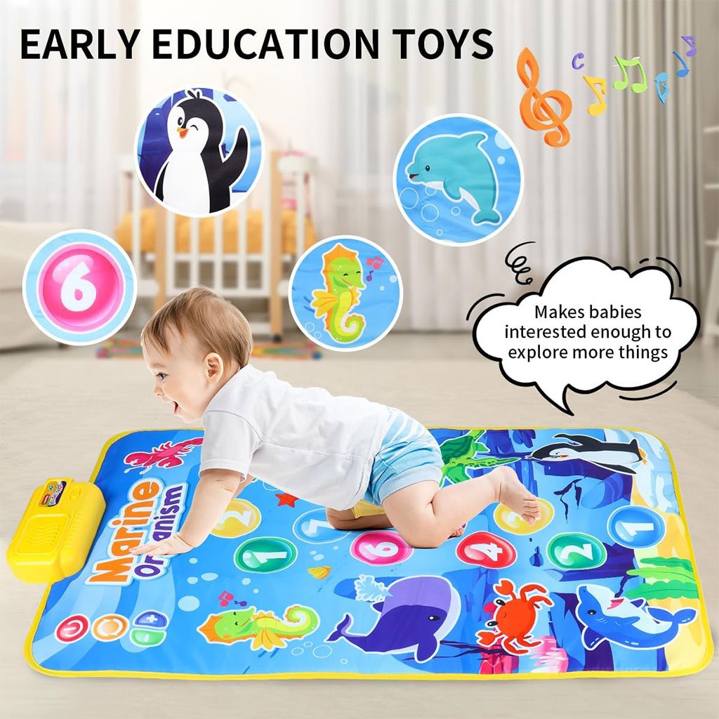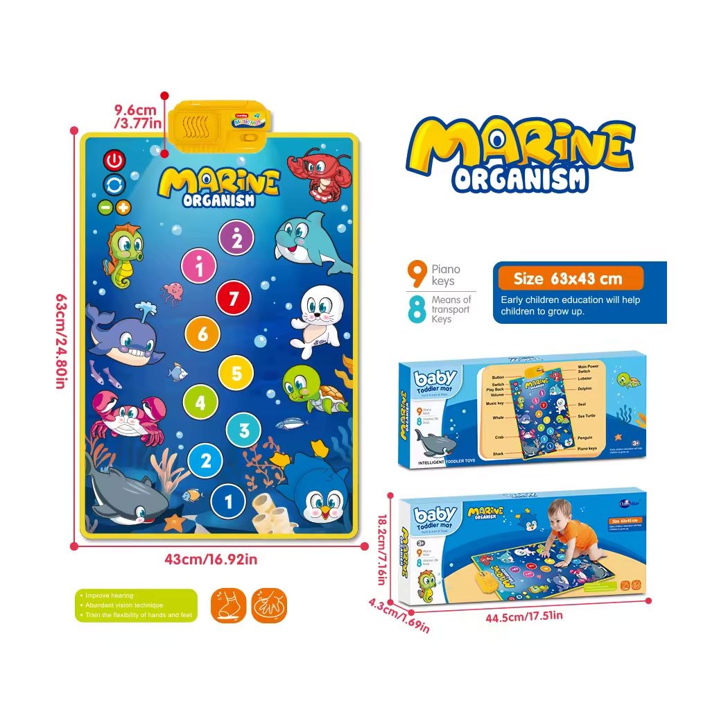 سجادة بيانو موسيقية للأطفال – متعة وتعلّم في آن واحد! امنح طفلك تجربة ممتعة وتعليمية مع هذه السجادة الموسيقية التي تحتوي على 9 مفاتيح بيانو، 8 أصوات حيوانات، و6 مقاطع موسيقية. تُحفز التنسيق بين العين واليد وتطوّر المهارات الحركية الدقيقة.【آمنة ومريحة】 مصنوعة من بلاستيك عالي الجودة، ناعم وخالٍ من الروائح، مع قاعدة مانعة للانزلاق تتيح للطفل اللعب والقفز بحرية وأمان.تصميم جذاب وتعليمي ألوان زاهية ورسومات دقيقة تضم حيوانات، أرقام، ونباتات لجذب انتباه الطفل وتعزيز الإدراك البصري والسمعي.【تعليم مبكر وتنمية معرفية】 تساعد الطفل على التعرف على الأرقام والحيوانات بطريقة تفاعلية ممتعة، مما يشجع على حب الاستكشاف والتعلّم.هدية مثالية للصغار يمكن استخدامها داخل أو خارج المنزل، وتعتبر هدية مثالية للأطفال الرضع والحديثي المشي. تجمع بين الترفيه والتعليم في منتج واحد.