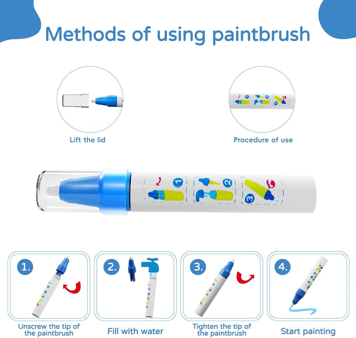 • طقم متكامل للرسم: يأتي مع قلمين مائيين وكتاب رسومات توضيحي لإلهام الأطفال في خطواتهم الأولى في عالم الفن.