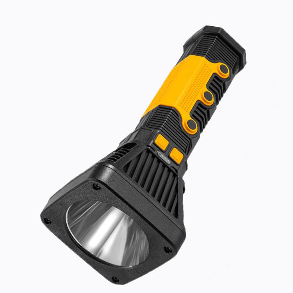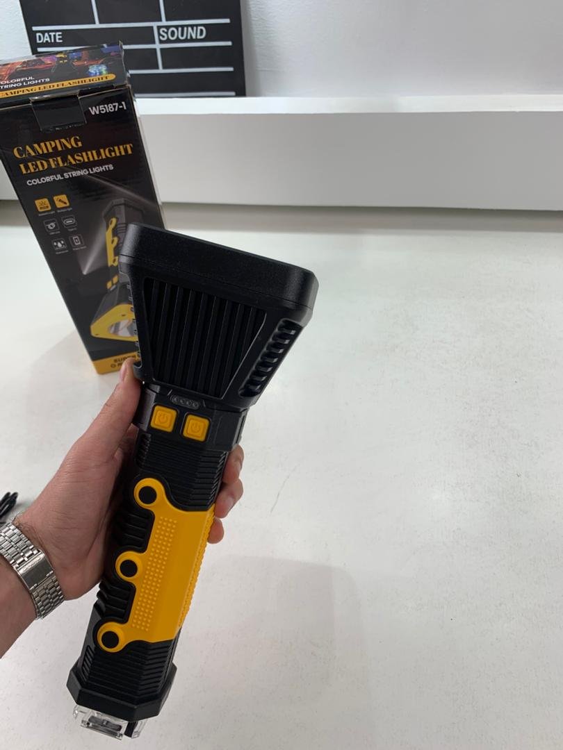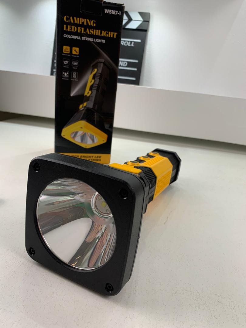 🔦 موديل W5187-1 مع أضواء ملونة 💡 مصباح P50 – قوة إضاءة عالية: – مستوى قوي: 1500 لومن – متوسط: 900 لومن ⏱️ مدة التشغيل: 3–4 ساعات 🔋 وقت الشحن: حوالي 4 ساعات ✨ الوظائف: – إضاءة رئيسية: بيضاء قوية/ضعيفة/وميض – ضوء خلفي: أزرق-أخضر تنفسي، أحمر-أصفر تنفسي، وميض متناوب 🎯 تصميم ذكي – مزود بخطافات وأضواء ملونة مخفية 🔌 عرض للطاقة – منافذ USB وType-C للشحن 🔋 البطارية: 4×18650 بسعة 6000 مللي أمبير (مُدمجة) 🧱 المواد: ABS + PS 📏 الحجم: 108×108×290 مم ⚖️ الوزن الصافي: 504 غرام / الوزن الكامل مع التغليف: 610 غرام 🖤 اللون: أسود 📦 الملحقات: كابل بيانات 📦 حجم الكرتون الخارجي: 58×47.5×62 سم (40 قطعة)