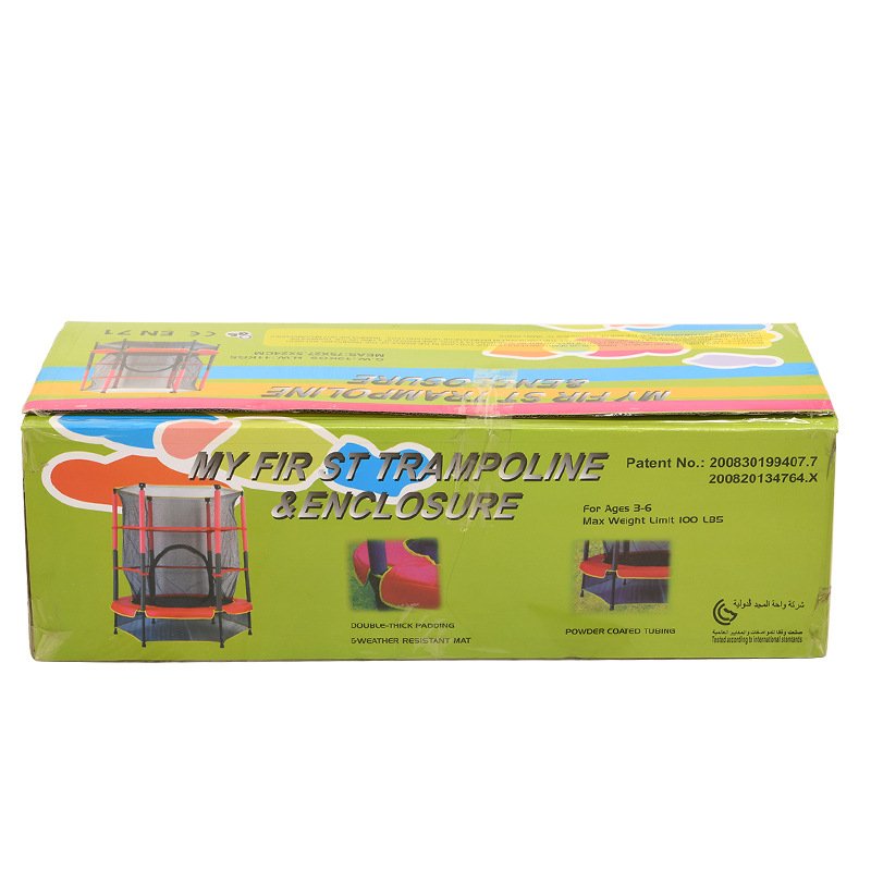ترامبولين آمن للأطفال (قطر 140 سم)مناسب للأطفال من 3 إلى 6 سنوات ويتحمل وزنًا حتى 50 كجم.فوائد صحية: يقوي عضلات الساق ويحسن تنسيق الحركة.مدخل بسحّاب قابل للإغلاق يسهل دخول وخروج الأطفال بأمان.شبكة حماية قوية ومرنة تضمن سلامة القفز.تصميم ممتع للأطفال ونشاط مثالي لتفريغ الطاقة.