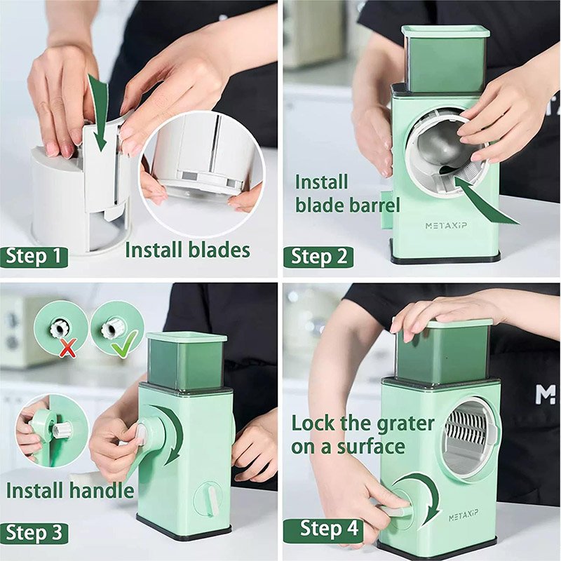 مفرمة / مبشرة خضروات متعددة الوظائفميزة الإدخال الأوسع: فتحة كبيرة بحجم 102×85 مم لتقطيع الخضروات والبطاطس الكبيرة بسهولة.أداة متعددة الاستعمالات: شفرات من الفولاذ المقاوم للصدأ بتصميم آمن، مثالية للجبن، البطاطس، الجزر، الخيار، المكسرات، والبسكويت.أداء أسرع: تصميم الأسطوانة الدوارة يقطع المكونات أسرع 5 مرات من المبشرات التقليدية وحتى 30 مرة أسرع من السكاكين العادية.آمنة وسهلة التنظيف: لا حاجة للكهرباء ولا لمس الشفرات، قابلة للفك وتوفير مساحة.المواد: PP + فولاذ مقاوم للصدأ.اللون: أخضر.الوظيفة: تقطيع / بشر / طحن.