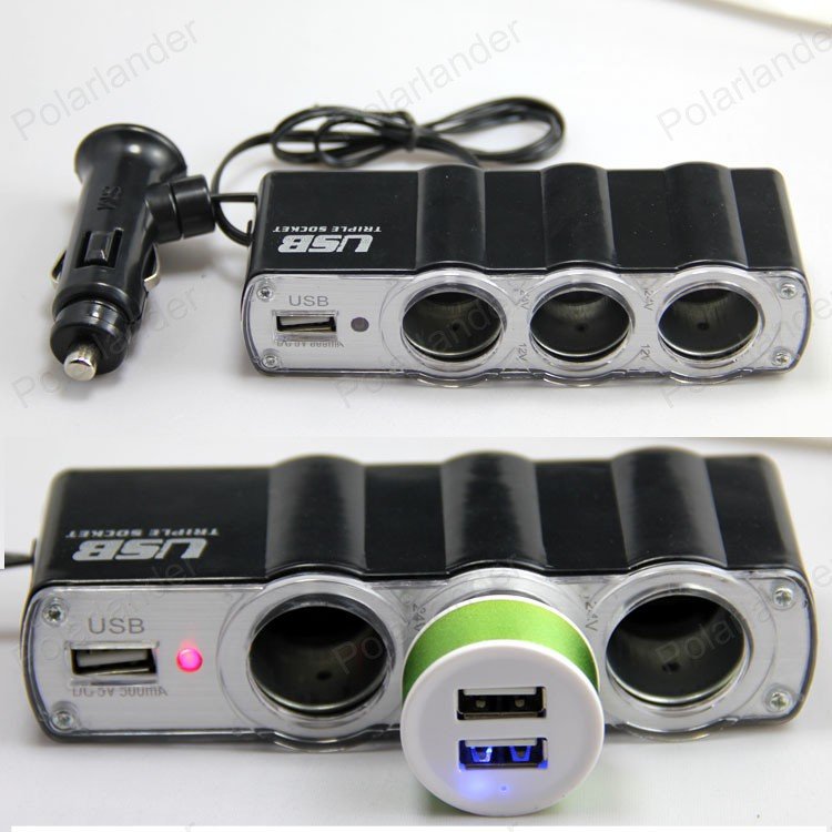 Triple Prise 12V/24V Allume-ci-gare USB Alimentation WF-0120