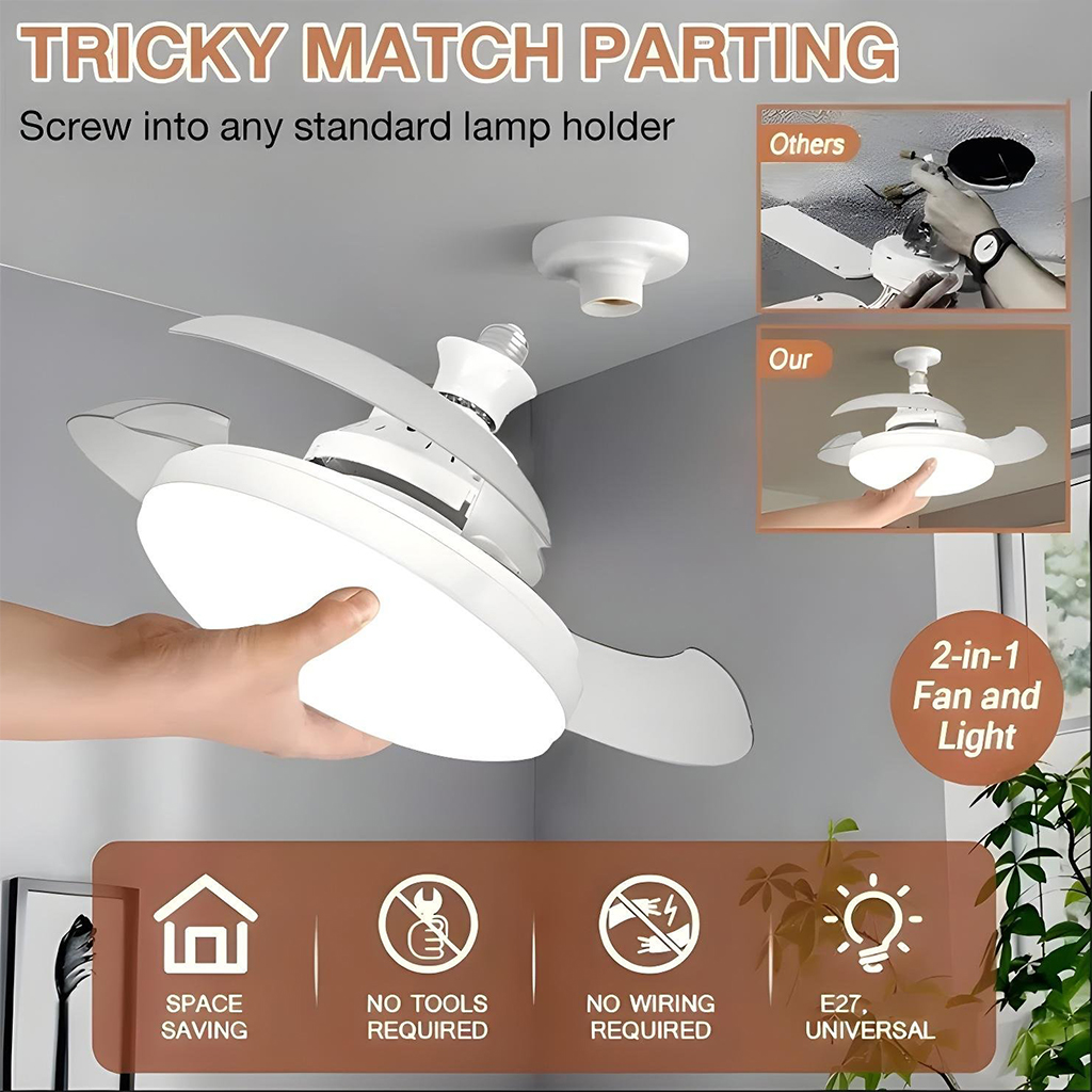 🌬️ مروحة السقف VT03 – أناقة، انتعاش وتكنولوجيا في منتج واحدتخيّل مزيجًا مثاليًا من الهواء المنعش، التصميم العصري والتقنية الذكية في جهاز واحد. مروحة السقف VT03 مزودة بـ شفرات قابلة للطي بتصميم حديث ومبتكر، تتحول عند إيقاف التشغيل إلى مصباح أنيق وفخم يضفي لمسة راقية على أي غرفة.توفر 3 ألوان إضاءة مختلفة لتناسب جميع الأجواء، من إضاءة دافئة ومريحة إلى إضاءة قوية ومشرقة.🔧 المواصفات التقنية:💡 ألوان الإضاءة: أبيض بارد – أبيض طبيعي – أبيض دافئ🔆 شدة إضاءة قابلة للتعديل🔇 تشغيل هادئ جدًا، مثالي لغرف النوم والمعيشة🌪️ 3 شفرات قابلة للطي تلقائيًا🎮 جهاز تحكم عن بعد لضبط السرعة ولون الإضاءة⚡ تركيب سهل بدون تمديدات إضافية🎛️ خيارات التحكم الذكي:⏱️ مؤقت إيقاف تلقائي (1 ساعة / 2 ساعات / 4 ساعات)🌬️ 3 سرعات للمروحة🌙 وضع الليل🔆 التحكم في شدة الإضاءة🎨 التحكم في درجة لون الإضاءة💡 زر تشغيل/إيقاف الإضاءة🌪️ زر تشغيل/إيقاف المروحة📏 أبعاد المنتج:قطر المصباح: 19.5 سمالارتفاع: 17.5 سم📦 محتويات العلبة:1 × مروحة سقف قابلة للطي مع إضاءة1 × جهاز تحكم عن بعد1 × قاعدة تركيب E27