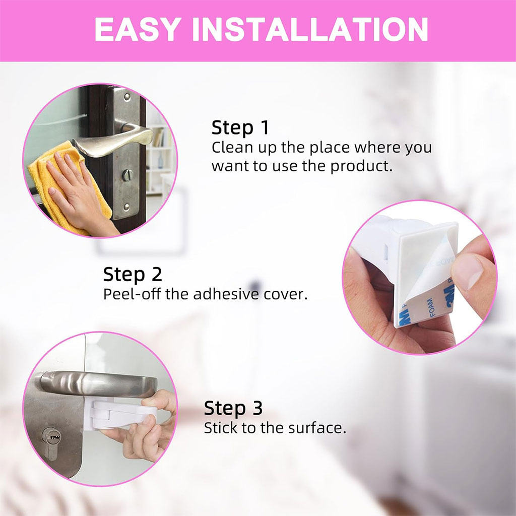 🔒 قفل أمان للأطفال لمقابض الأبواب⚙️ سهل التركيبقفل أمان الأطفال سهل التثبيت دون الحاجة إلى الحفر أو البراغي. يكفي تنظيف سطح الباب جيدًا ثم لصق القفل أسفل المقبض بكل بساطة.🔁 آلية أمان مزدوجةيعمل بنظام الدفع والدوران معًا، ما يجعل فتح الباب صعبًا على الأطفال والحيوانات الأليفة، ويضمن حماية فعّالة داخل المنزل.🛡️ جودة عالية وآمنةمصنوع من بلاستيك ABS عالي الجودة وصديق للبيئة، يتميز بالمتانة وطول العمر. يأتي مع لاصق قوي عالي الجودة يضمن ثباتًا ممتازًا دون خطر الانفصال، ويمكن استخدامه بكل أمان داخل المنزل.🧼 سهل الإزالة دون تلفيمكن إزالة القفل بسهولة دون إلحاق أي ضرر بسطح الباب. كل ما عليك فعله هو تسخينه لبضع دقائق باستخدام مجفف الشعر، ثم سحبه إلى الأسفل بلطف.⚠️ ملاحظات هامةيجب تركيبه على سطح أملس، مستوٍ ونظيفغير مناسب للأسطح غير المنتظمةللحصول على أفضل نتيجة، يُنصح بالانتظار 24 ساعة بعد التركيب قبل الاستعمال✅ حل عملي وذكي لحماية الأطفال ومنح الأهل راحة البال داخل المنزل.